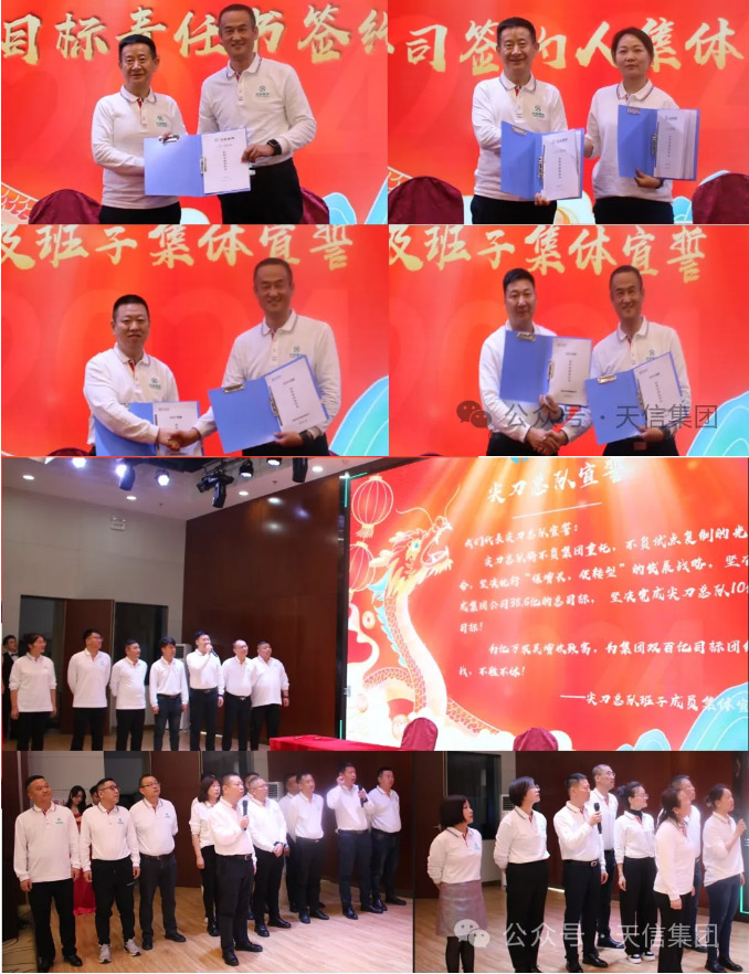 集團(tuán)、尖刀總隊(duì)、突擊總隊(duì)和集團(tuán)分公司2024年經(jīng)營目標(biāo)責(zé)任書簽約環(huán)節(jié)振奮人心,簽約人及班子集體宣誓:志為億萬農(nóng)民增收致富和集團(tuán)雙百億目標(biāo)團(tuán)結(jié)奮戰(zhàn),不勝不休!