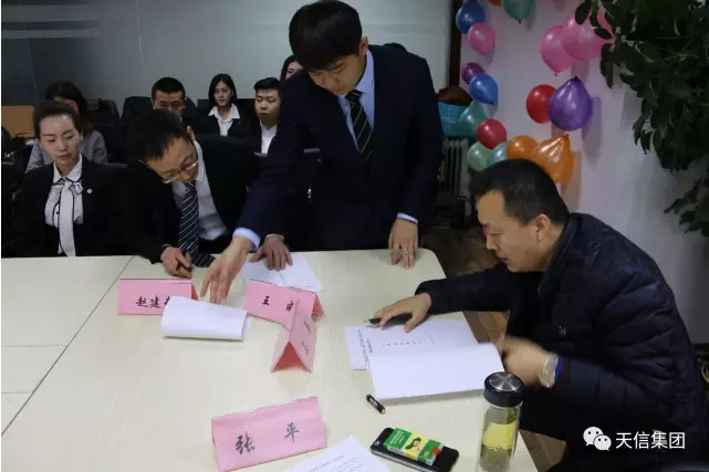 會(huì)上,公司總經(jīng)理馬平分別于與普惠金融業(yè)務(wù)部經(jīng)理王威、副經(jīng)理趙建武簽訂了《經(jīng)營考核責(zé)任書》。